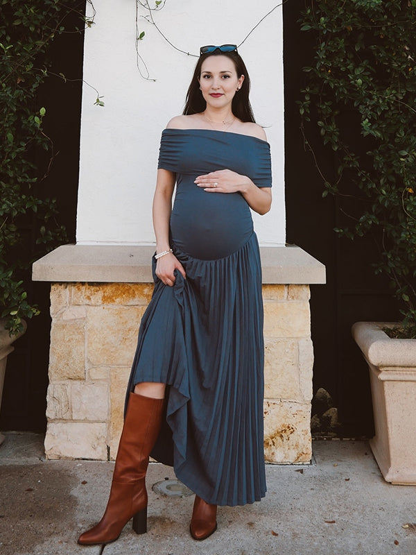 Mumsmode Zwangerschaps Maxi BabyShower Jurk Chique Kanten Patchwork Zeemeermin Off Shoulder GekreuktNormale prijs €75,00Verkoopprijs €75,00 Normale prijsEenheidsprijs / per