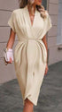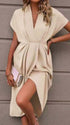 Midi Bodyconjurk Zwangerschaps Gekreukt Zijsplit Onregelmatig Werk Beige