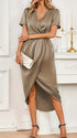 Midi Bodyconjurk Zwangerschaps Gekreukt Zijsplit Werk Champagne