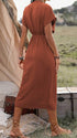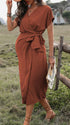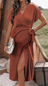 Midi Dailyjurk Zwangerschaps Ruches Riem Zijsplit Karamel