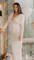 Mumsmode Babyshower Bruiloft Gast Maxi Zwangerschapsjurk Bodycon Chique Gekreukt Diepe Halslijn