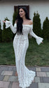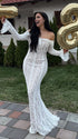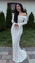 Mumsmode Chique Elegant Ceremonie Bruiloft Kanten Off Shoulder Zeemeermin Bodycon Flare Mouw Maxi Jurk
