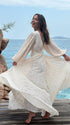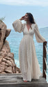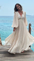 Mumsmode Elegant Ceremonie Bruiloft Rugloos Geplooid Vloeibaarheid Lantaarn Mouw Maxi Jurk