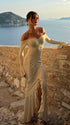 Detail : Zijsplit, ruches, off shoulder, gekreukt, bodycon, zeemeermin