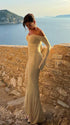 Mumsmode Elegant Chique Cocktail Zijsplit Ruches Off Shoulder Gekreukt Zeemeermin Maxi Bodycon Jurk