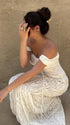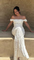 Mumsmode Elegant Chique Vakantie Ceremonie Ripped Off Shoulder Bodycon Zeemeermin Maxi Jurk