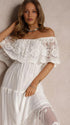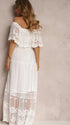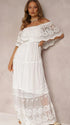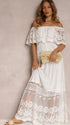 Mumsmode Elegant Chique Vakantie Kanten Off Shoulder Ruches Vloeibaarheid Maxi Jurk
