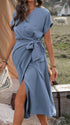 Mumsmode Midi Dailyjurk Zwangerschaps Ruches Riem Zijsplit
