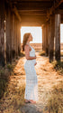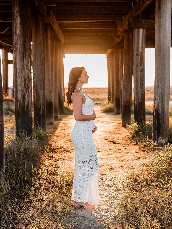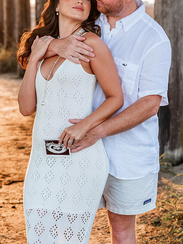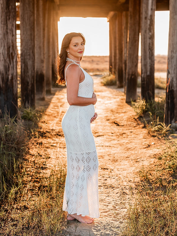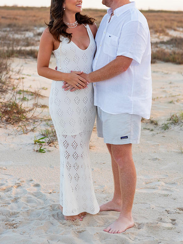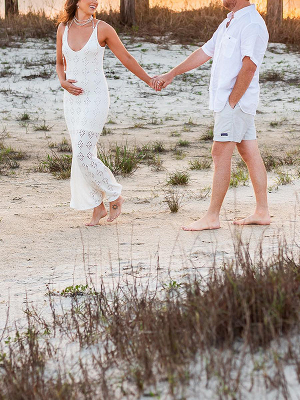 Mumsmode Zwangerchap Bodycon Jurken Boheems Fotoshoot Knit Geometrisch Uithollen Maxi Jurken