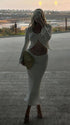 Mumsmode Zwangerchap Bodycon Jurken Boheems Fotoshoot Vakantie 2-in-1 Knit Golvende Rand Maxi Jurken