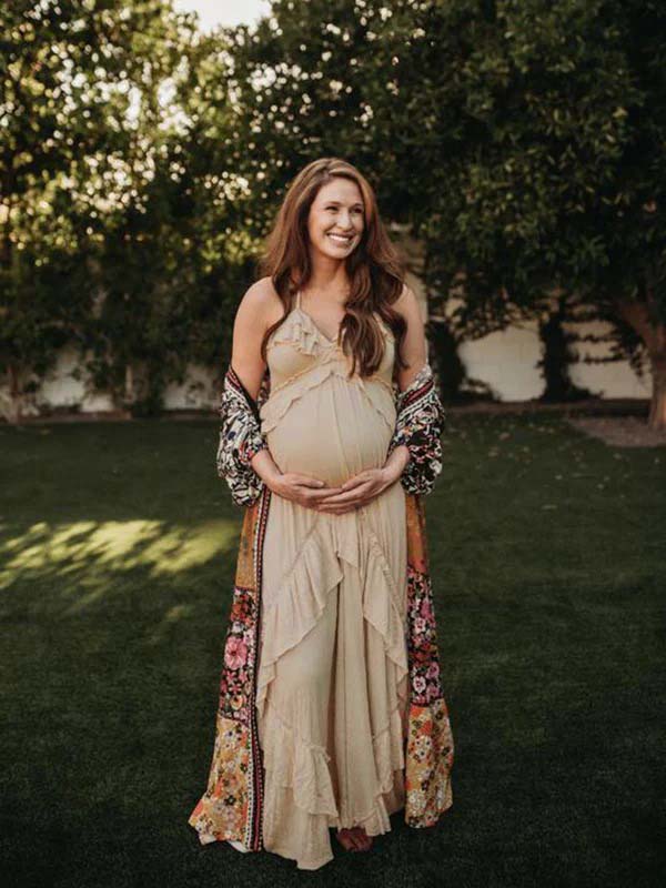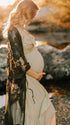 Mumsmode Zwangerchap Fotoshoot Jurken Boheems Fotoshoot Onregelmatig Ruches Rugloos Gedrapeerd Spaghetti Maxi Jurken