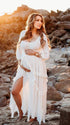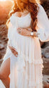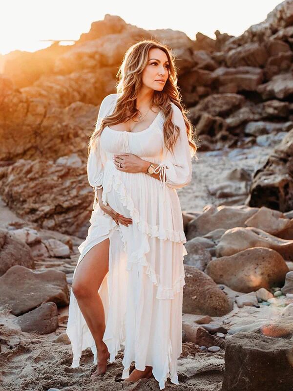 Mumsmode Zwangerchap Fotoshoot Jurken Boheems Onregelmatig Zijsplit Ruches Maxi Jurken