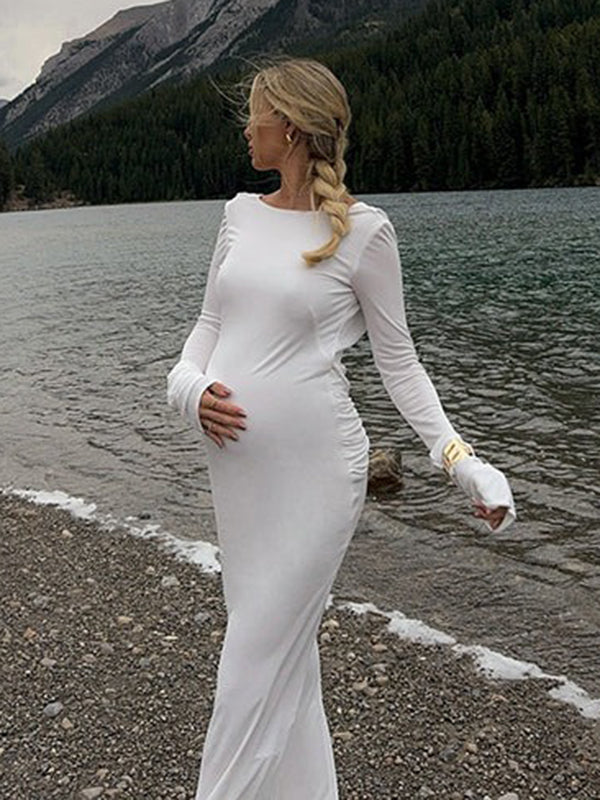 Mumsmode Zwangerchap Speciale Gelegenheden Jurken Elegant Rugloos Gekreukt Wachtrij Bruiloft Maxi Jurken