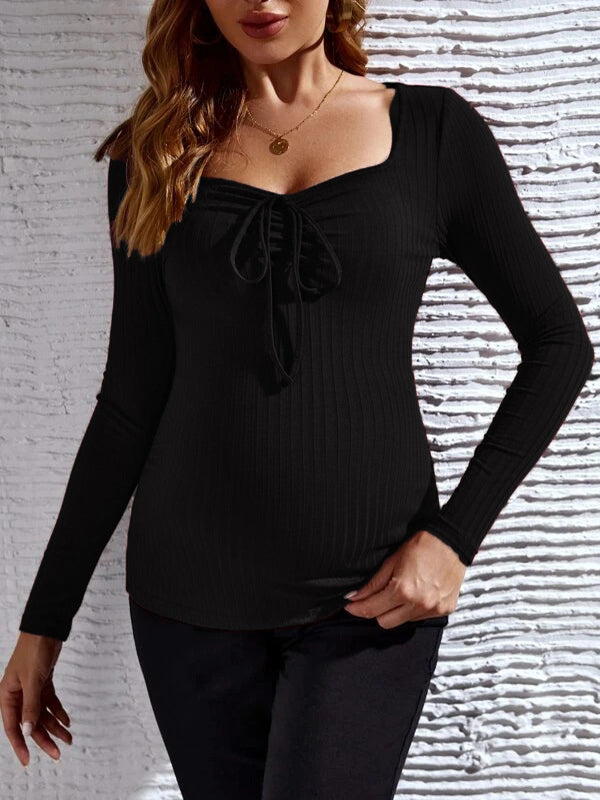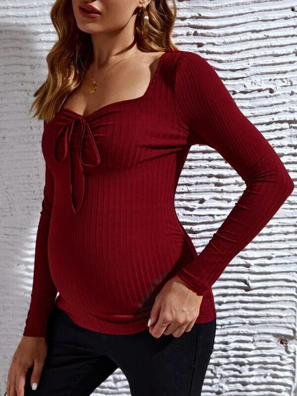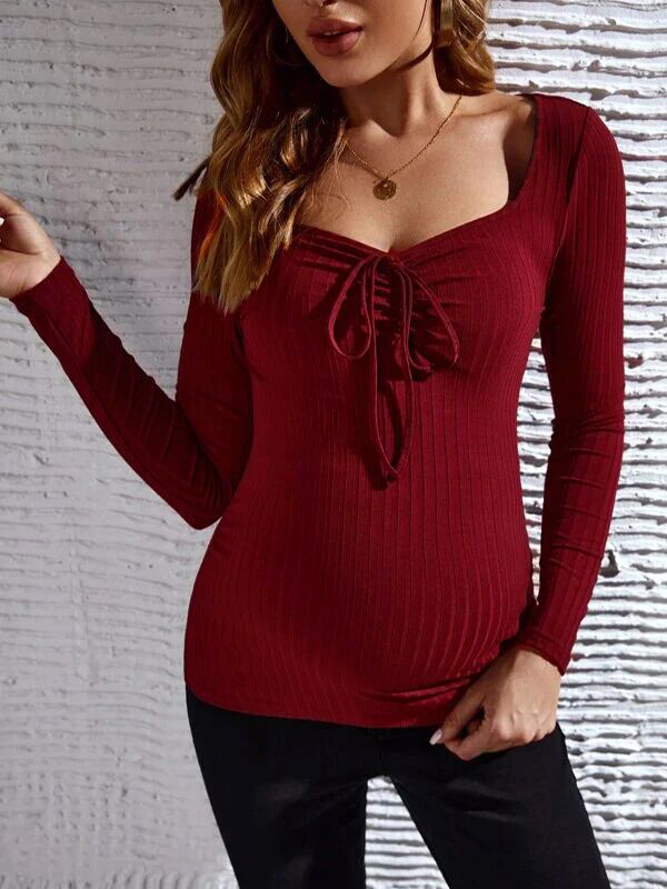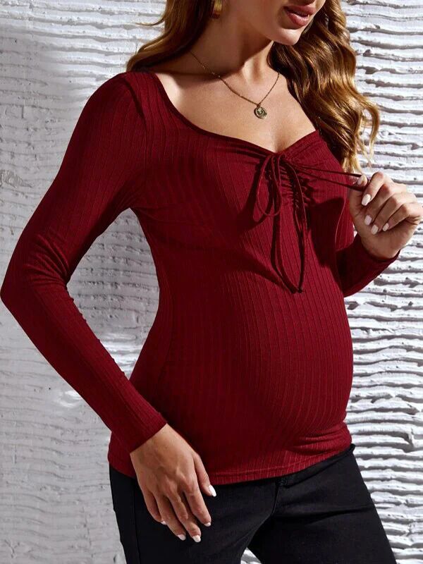 Mumsmode Zwangerchap T-shirts Dagelijks Vrije Tijd Koord Bodycon Lange Mouw Vrouwentops