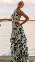 Mumsmode Zwangerchaps Bloemen Jurken Elegant Ceremonie Vakantie Bloemenprint Ruches Gevlochten Riem Maxi Jurken