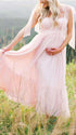 Mumsmode Zwangerchaps Cocktailjurken Elegante Fotoshoot Tule Stippenprint Spaghetti Maxi Jurken