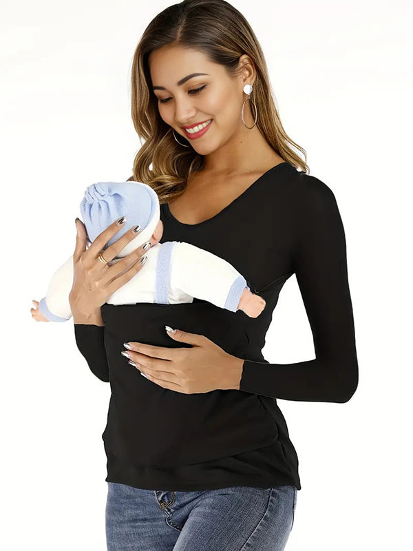 Mumsmode Zwangerchaps Dagelijks Kangoeroe trui Ronde Hals Lange Mouw