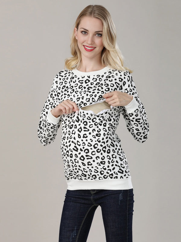 Mumsmode Zwangerchaps Dagelijks Verpleegkundige Sweatshirts Luipaard Rits Ronde Hals Wit