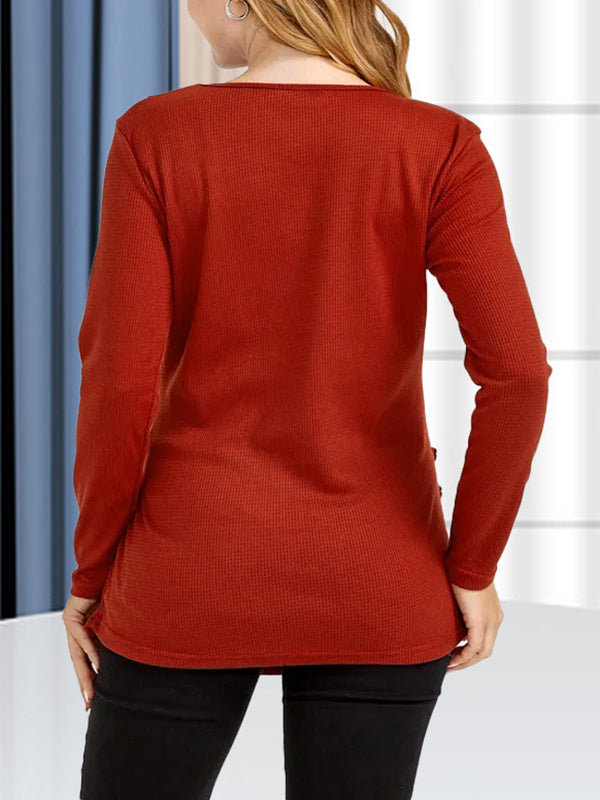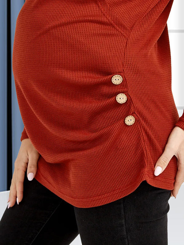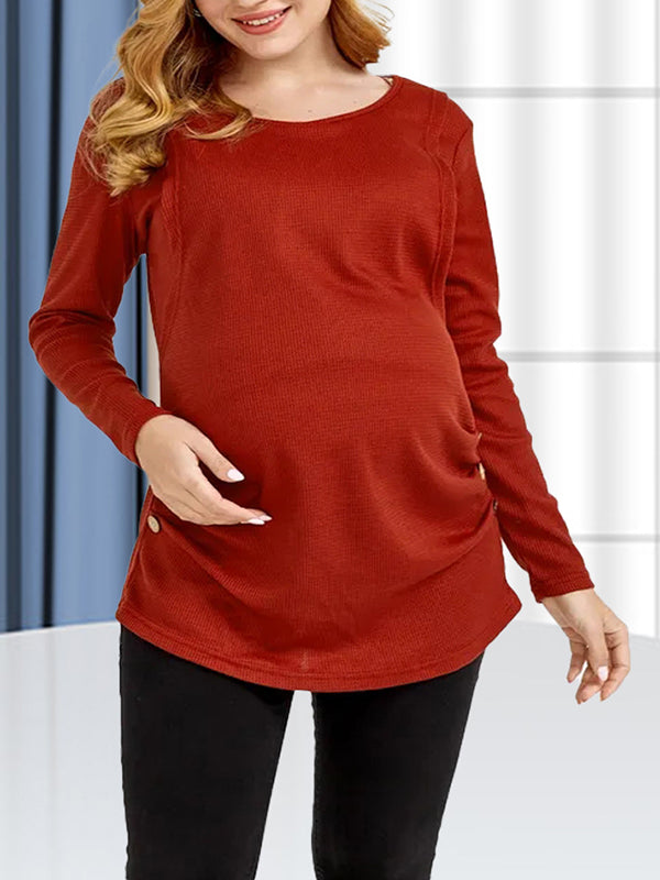 Mumsmode Zwangerchaps Dagelijks Verpleegkundige Tops Knoopjes Ronde Hals Baksteenrood