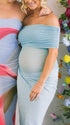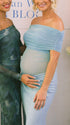 Mumsmode Zwangerchaps Maxi BabyShower Jurken Elegant Gekreukt Boot Nek Hemelsblauw