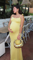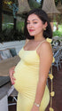 Mumsmode Zwangerchaps Maxi BabyShower Jurken Elegant Riem Enkele Borst Appliques V-hals Geel
