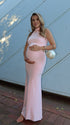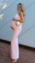 Mumsmode Zwangerchaps Maxi BabyShower Jurken Elegant Rugloos Gebonden rug Zeemeermin Halternek Roze