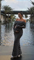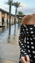 Mumsmode Zwangerchaps Maxi Cocktail Jurken Elegante Zwart En Wit Stippenprint Off Shoulder Gekreukt Bodycon
