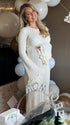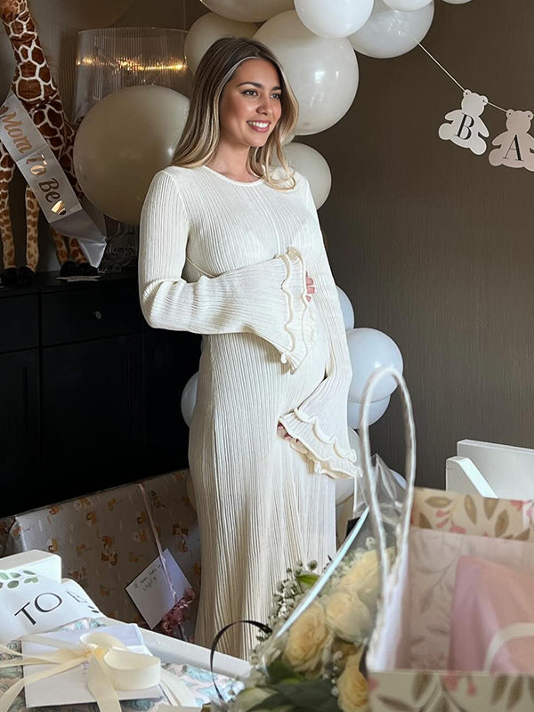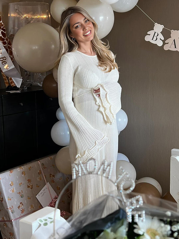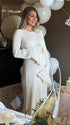 Mumsmode Zwangerchaps Maxi Elegantejurken Rugloos Golvende Rand Koord Wit