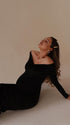 Mumsmode Zwangerchaps Maxi Fotoshoot Cocktail Jurken Elegante Off Shoulder Gerimpelde Bodycon Zwart