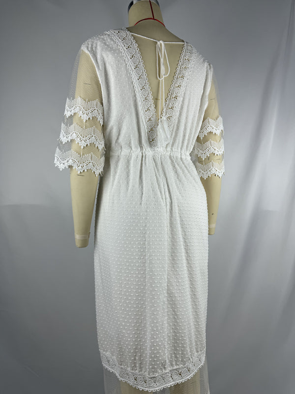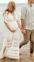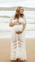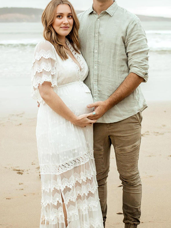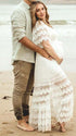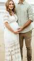 Mumsmode Zwangerchaps Maxi Fotoshoot Jurk Boheems Kanten Rugloos Kwasten V-hals Wit