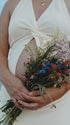 Meet met een zacht meetlint vanaf de naad van het hoogste punt van je schouder & tot aan je zij. De lengte van het kledingstuk wordt gemeten tot aan de zoom.