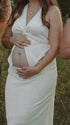 Mumsmode Zwangerchaps Maxi Fotoshoot Jurk Elegant 2-in-1 Halternek Wit