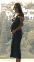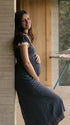 Mumsmode Zwangerchaps Maxi Fotoshoot Jurk Elegant Stippenprint Kanten V-hals Marineblauw