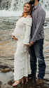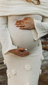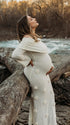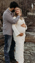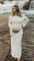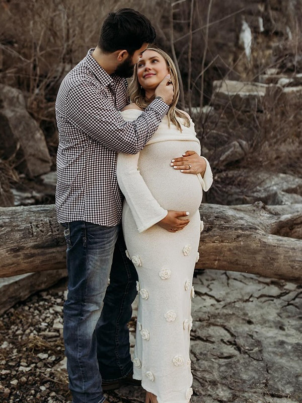 Mumsmode Zwangerchaps Maxi Fotoshoot Jurken Appliques Boot Nek Flare Mouw Wit