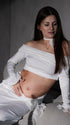 Mumsmode Zwangerchaps Maxi Fotoshoot Jurk Appliques Rugloos 2-in-1 Boot Nek Wit