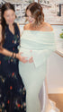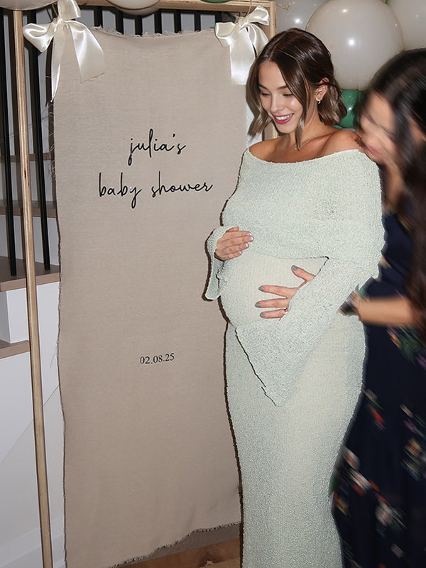 Mumsmode Zwangerchaps Maxi Fotoshoot Jurken Breien Boot Nek Flare Mouw Lichtgroen