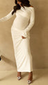 Mumsmode Zwangerchaps Maxi Fotoshoot Jurken Een Open Schouder Lange Mouw Wit