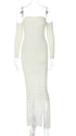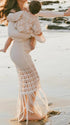 Mumsmode Zwangerchaps Maxi Fotoshoot Jurken Elegant Breien Kwasten Uithollen Bandeau Off Shoulder
