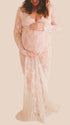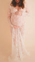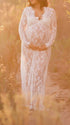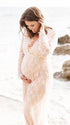 Mumsmode Zwangerchaps Maxi Fotoshoot Jurken Elegant Kanten Borduursel V-hals Wit Boheems