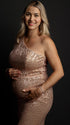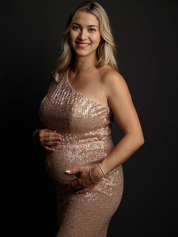 Mumsmode Zwangerchaps Maxi Fotoshoot Jurken Elegant Pailletten Een Open Schouder Zeemeermin Roségoud