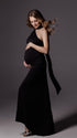 Mumsmode Zwangerchaps Maxi Fotoshoot Jurken Elegant Rugloos Zeemeermin Halternek Mouwloos Zwart