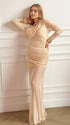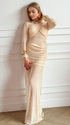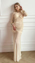 Mumsmode Zwangerchaps Maxi Fotoshoot Jurken Elegant Tule Gekreukt Ronde Hals Beige