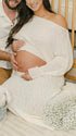 Mumsmode Zwangerchaps Maxi Fotoshoot Jurken Off Shoulder 2-in-1 Boot Nek Beige