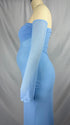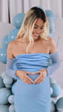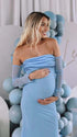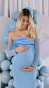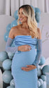 Mumsmode Zwangerchaps Maxi jurk Off Shoulder Gekreukt Boot Nek Cocktail Babyshower Blauw