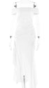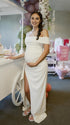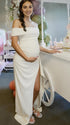Mumsmode Zwangerchaps Maxi Jurk Off Shoulder Zijsplit Ruches Gekreukt Cocktail Bal Babyshower Elegant Wit