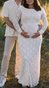 Mumsmode Zwangerchaps Maxi Kanten Jurke Elegant Borduursel Boot Nek Wit
