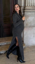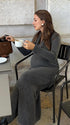 Mumsmode Zwangerchaps Maxi Trui Jurken Elegant Zijsplit Breien Ruches Kraag Lange Mouw Grijs