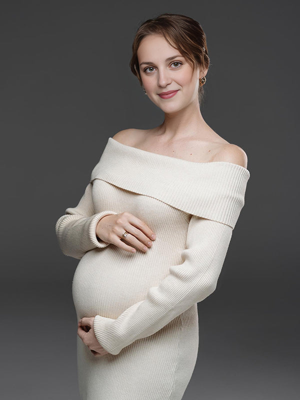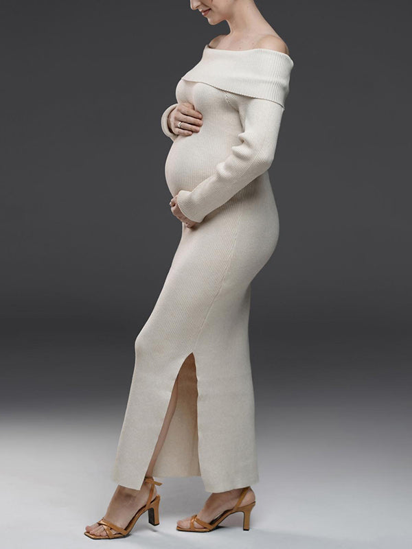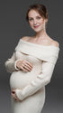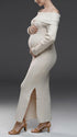 Mumsmode Zwangerchaps Maxi Trui Jurken Off Shoulder Zijsplit Boot Nek Wit