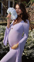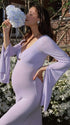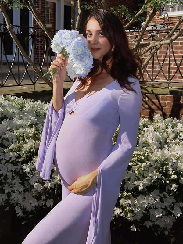 Mumsmode Zwangerchaps Maxi Wikkel Jurken Spaghetti U-hals Flare Mouw Paars