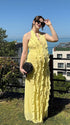 Mumsmode Zwangerchaps Maxijurk Ruches Rugloos Elegant Bal Geel